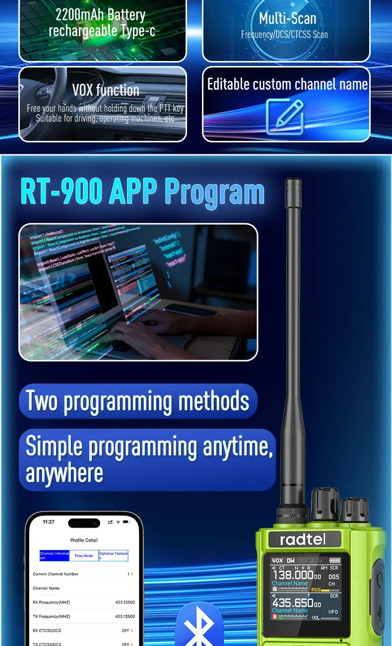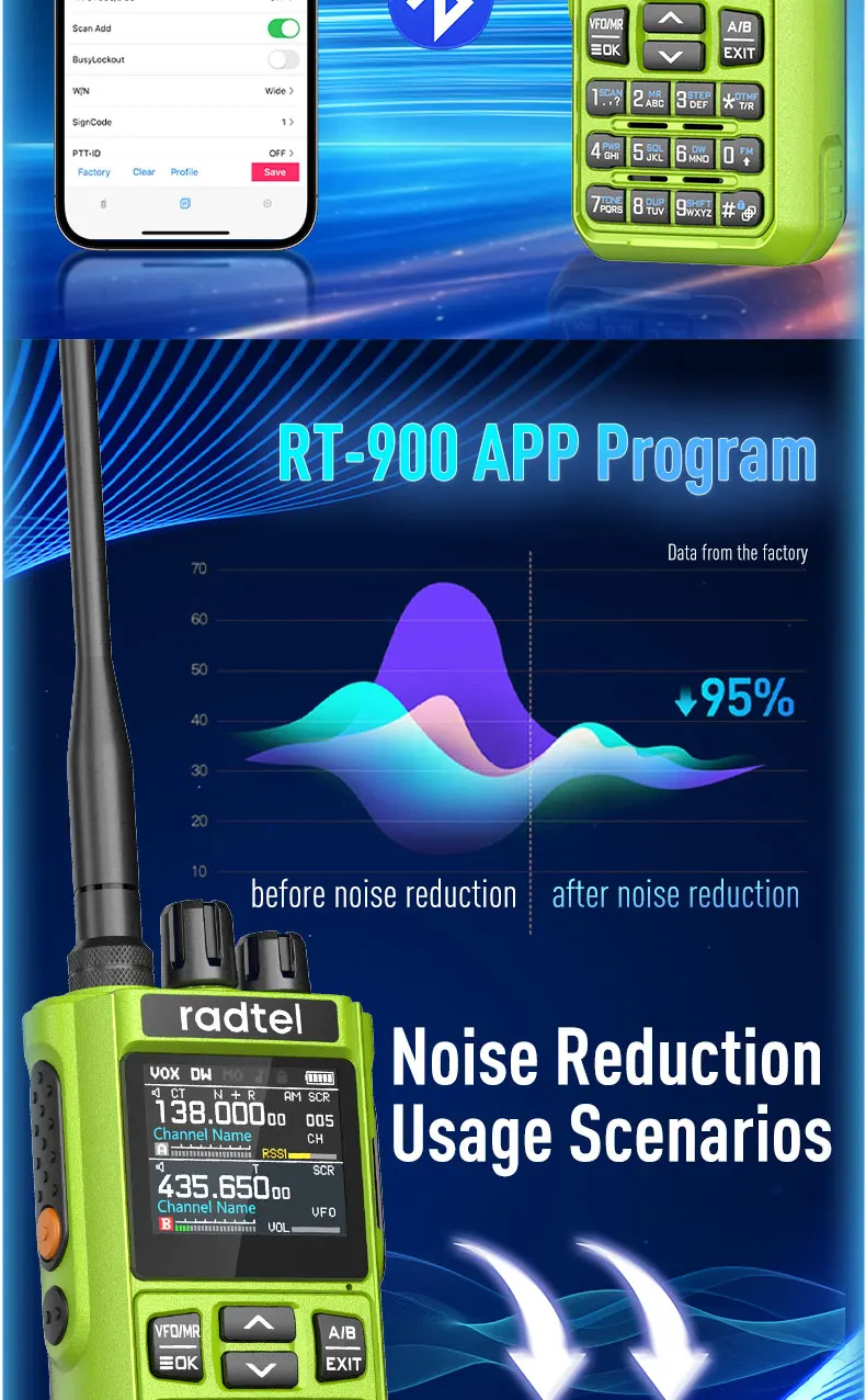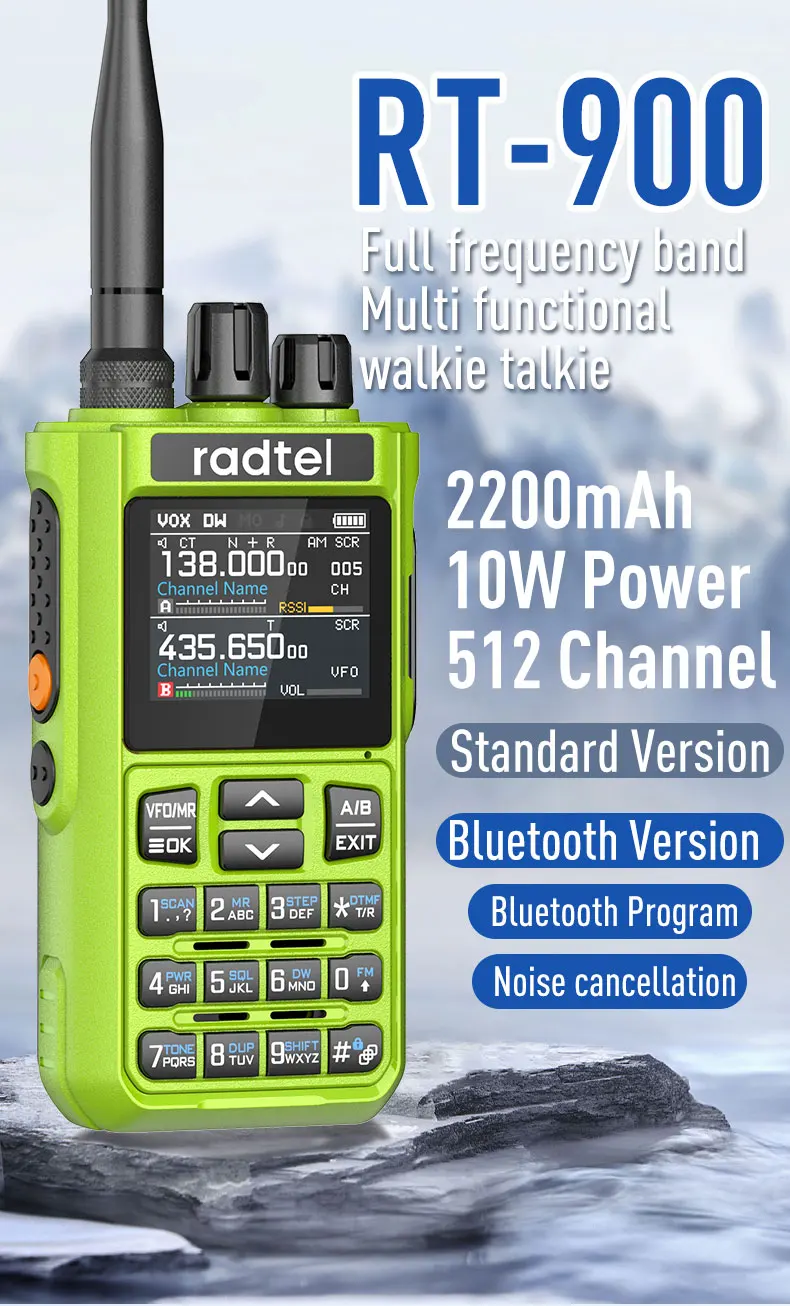 Radtel RT-900 Green  8W Full band Ham Radio Walkie Talkie 512CH Air Band Two Way Radio Station Aviation NOAA  Marine River PTT