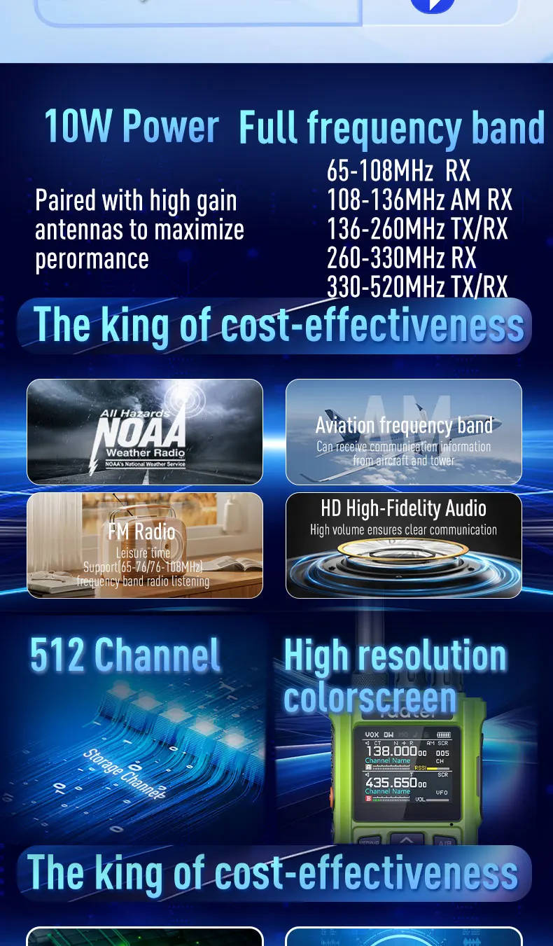 Frequency Range: 18-108MHZ TX/RX 108-136MHZ RX ,136-999MHZ TX/RX